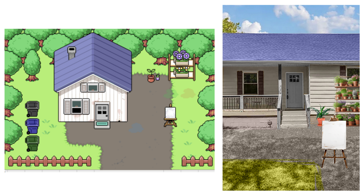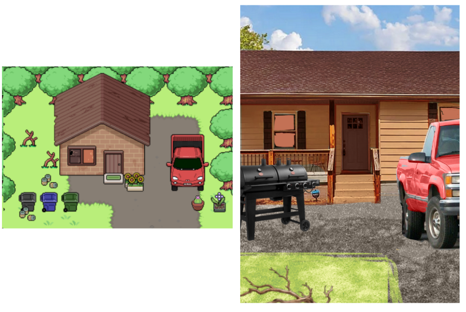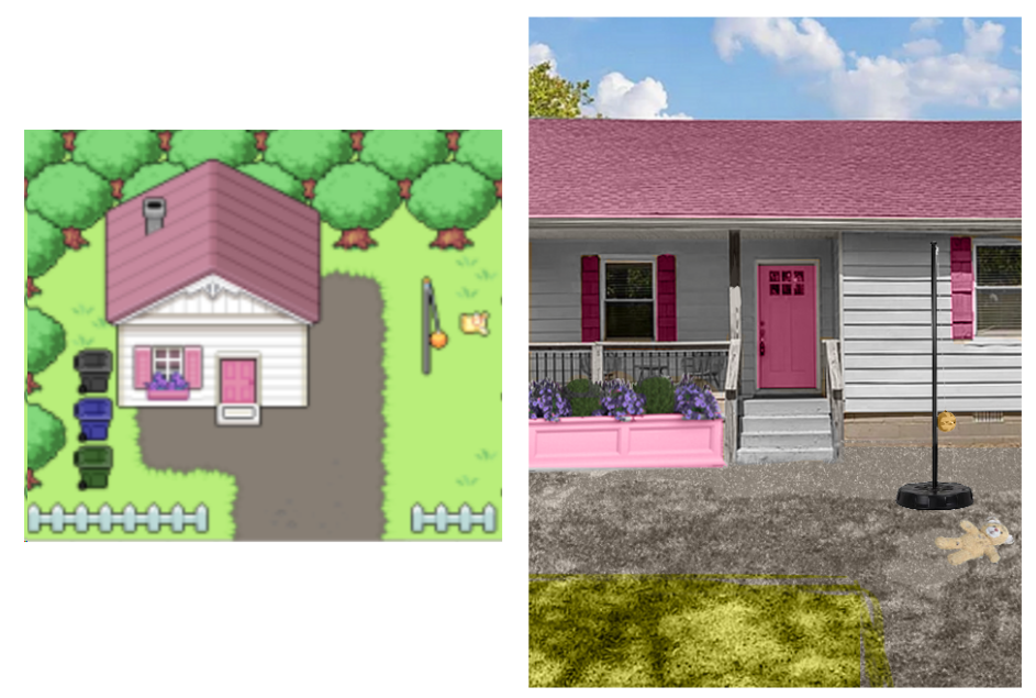 I did all the pizza people's backgrounds, making edits of 3 main houses to mirror the three sets of houses as seen in game. I got these houses off of ZILLOW and drew over the adresses