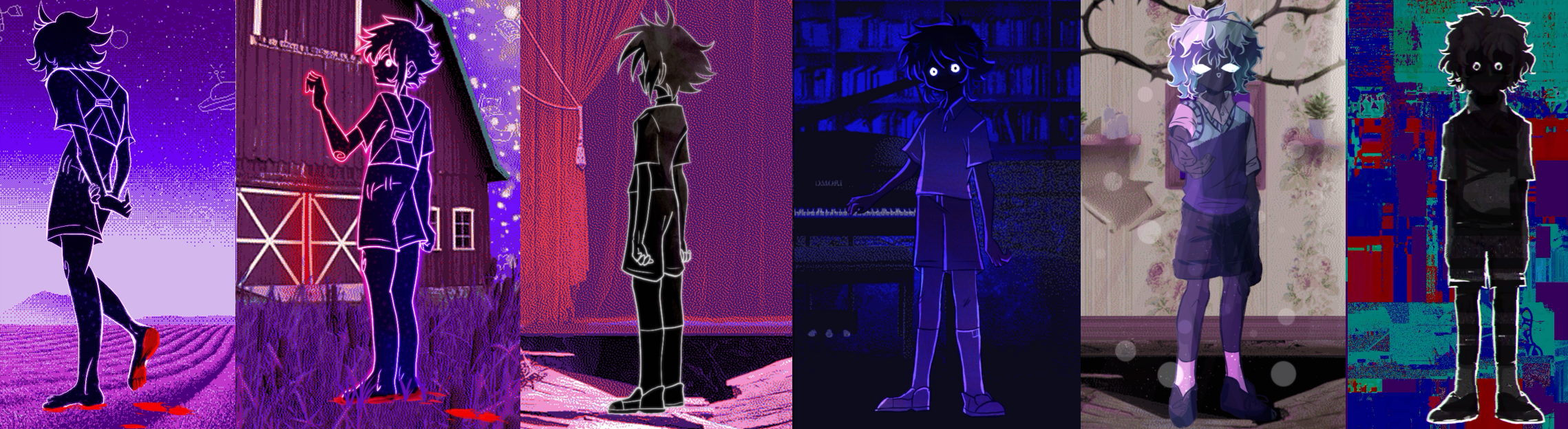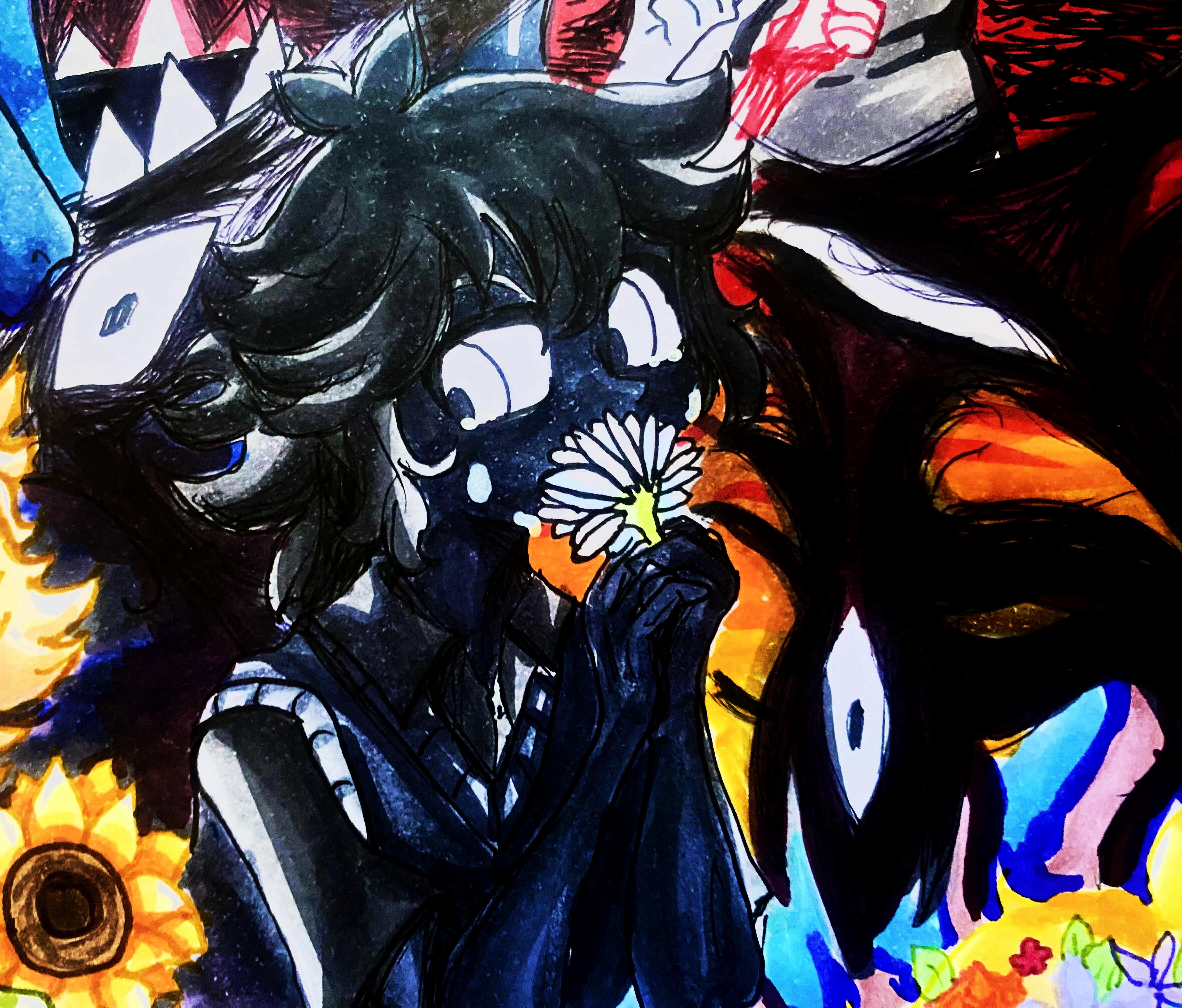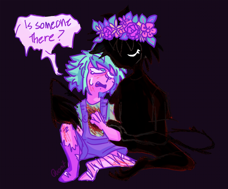 I remember REALLY not liking this ones coloring as I was working on it. I felt like it looked, like, bad, uninteresting somehow. So I added a Color Burn paper on top of them and instantly looooved it. Where'd I get the idea? Omori! Omori the video game does that a lot! I also sometimes do color burn with paper texture, like, in general!