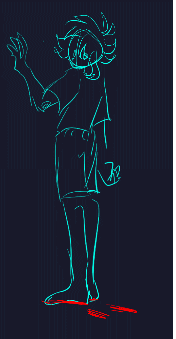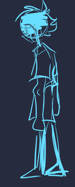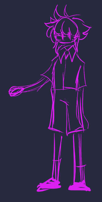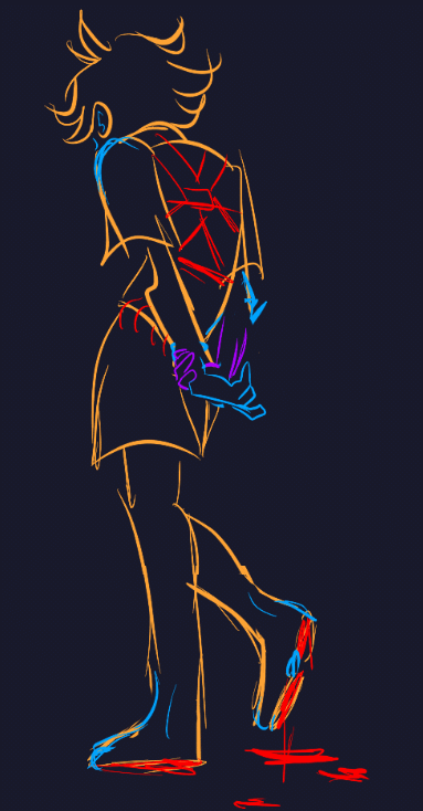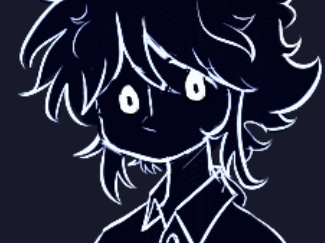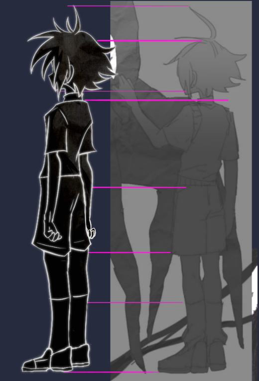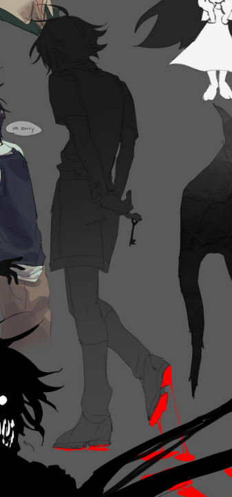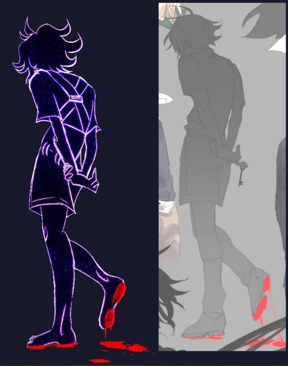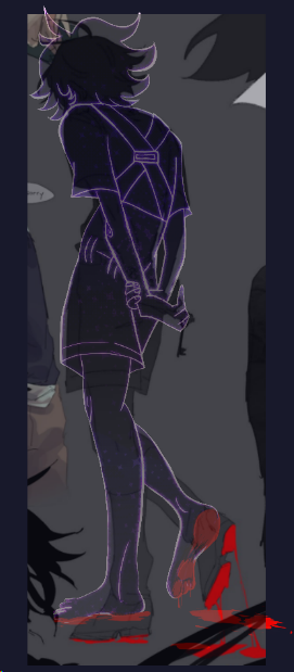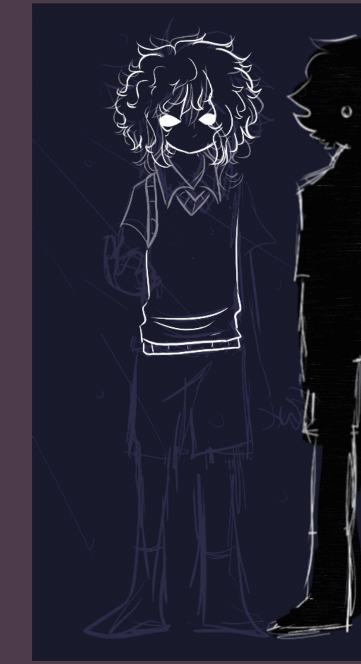 Aaand then Stranger lost his lineart and went back to being a silhouette with eyes, the glitchy Stranger, the spookiest one. The details of his clothes are fading...