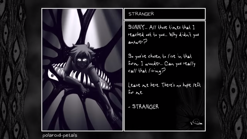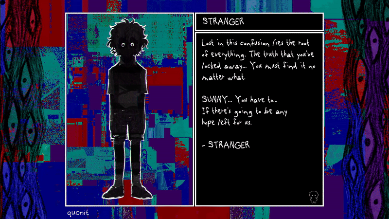 This version of Stranger is an odd one that interests me personally, where it is the shadow_basil sprite being used but the text box does say Basil. Only instance of like, Sunny admitting that that shadow is really Basil. It was helpful to include in the truth sequence as there really aren't that many "NPCs" in the traditional sense but it's not like we could mess up basically the best part of the game!! heheh.
