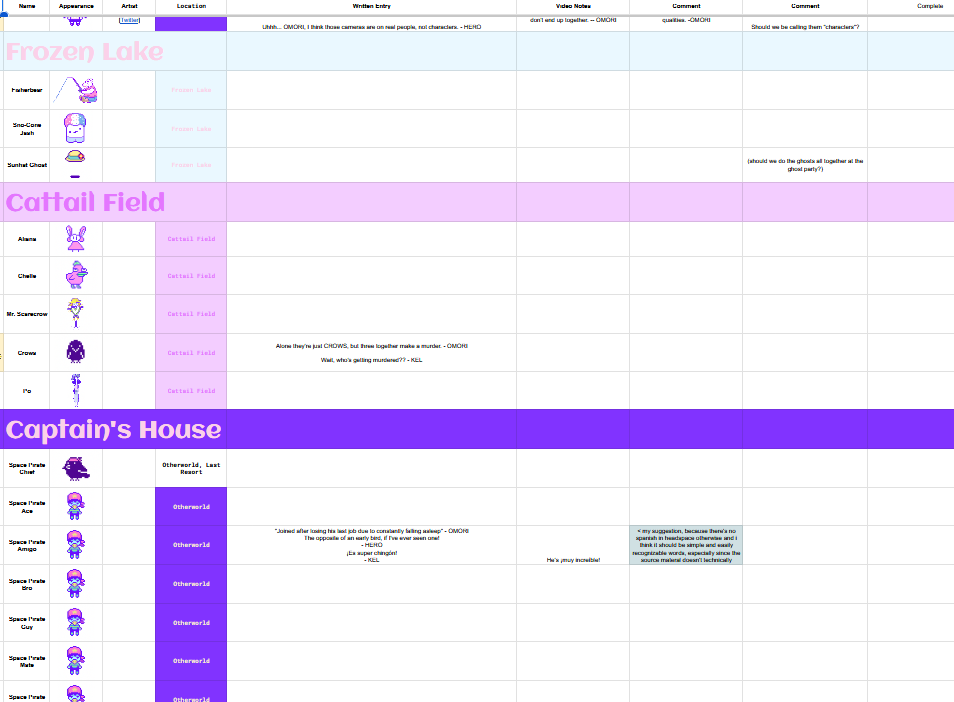 Eventually I made a "Completed Entries" list that would show the character sprite, credits to whichever artist drew them, and the order they'd all appear in the video in (chronological like the game).I realized 1. This video would be 3 hours long, and 2. You could basically retell the entire story of Omori with it, if only a few more key character variants would show up.