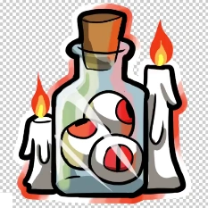 Hat - Two candles (colorpicked with the wax colors and brighter orange fire) with the hat that resembles the cork bottlecap, and the ring around it.